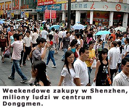 Shenzhen to miasto o największej migracji w całych Chinach. W ciągu ostatnich siedmiu lat populacja wzrosła z czterech milionów do dziesięciu milionów. Na metr kwadratowy przypada w Shenzhen pięciu ludzi. Dla przykładu we Wrocławiu liczba mieszkańców podwoiła się w okresie czterdziestu dwóch lat. Gdyby dwa lata temu nie uruchomiono metra w Shenzhen zapewne miasto byłoby dzisiaj sparaliżowane. Codziennie wieczorem na granicy Hong Kong - Shenzhen na taksówki czeka około dwieście osób, w kolejce trzeba czasami stać nawet godzinę. Centra handlowe, hipermarkety, targowiska stają się w każdy weekend morzem ludzi, w którym trzeba umieć się poruszać. Dlaczego nie wybrać się do parku? Tam też nie da się odpocząć od armii ludzi, zdarza się, że do parku Lian Hua Shan w Shenzhen wchodzi się w kolejce, a towarzyszą nam cały czas setki ludzi. Tłum i hałas są szczególnie męczące, ciągły pośpiech, przepychanie i nadeptywanie bez żadnych przeprosin to tutaj codzienność. Psycholog kliniczny Tatiana Ostaszewska-Mosak potwierdza, że obcowanie z tłumem męczy, ale w jakimś sensie musimy się do tego przyzwyczaić: - Generalnie nadmiar bodźców męczy nas i to bez względu na granicę wytrzymałości. A nadmiar ludzi jest także takim nadmiarem. Trzeba być czujnym , uważnym, ciągle zdolnym do szybkiego reagowania - wszak to ciągle kontakt społeczny, a dla człowieka ten rodzaj kontaktu jest wciąż najważniejszy.